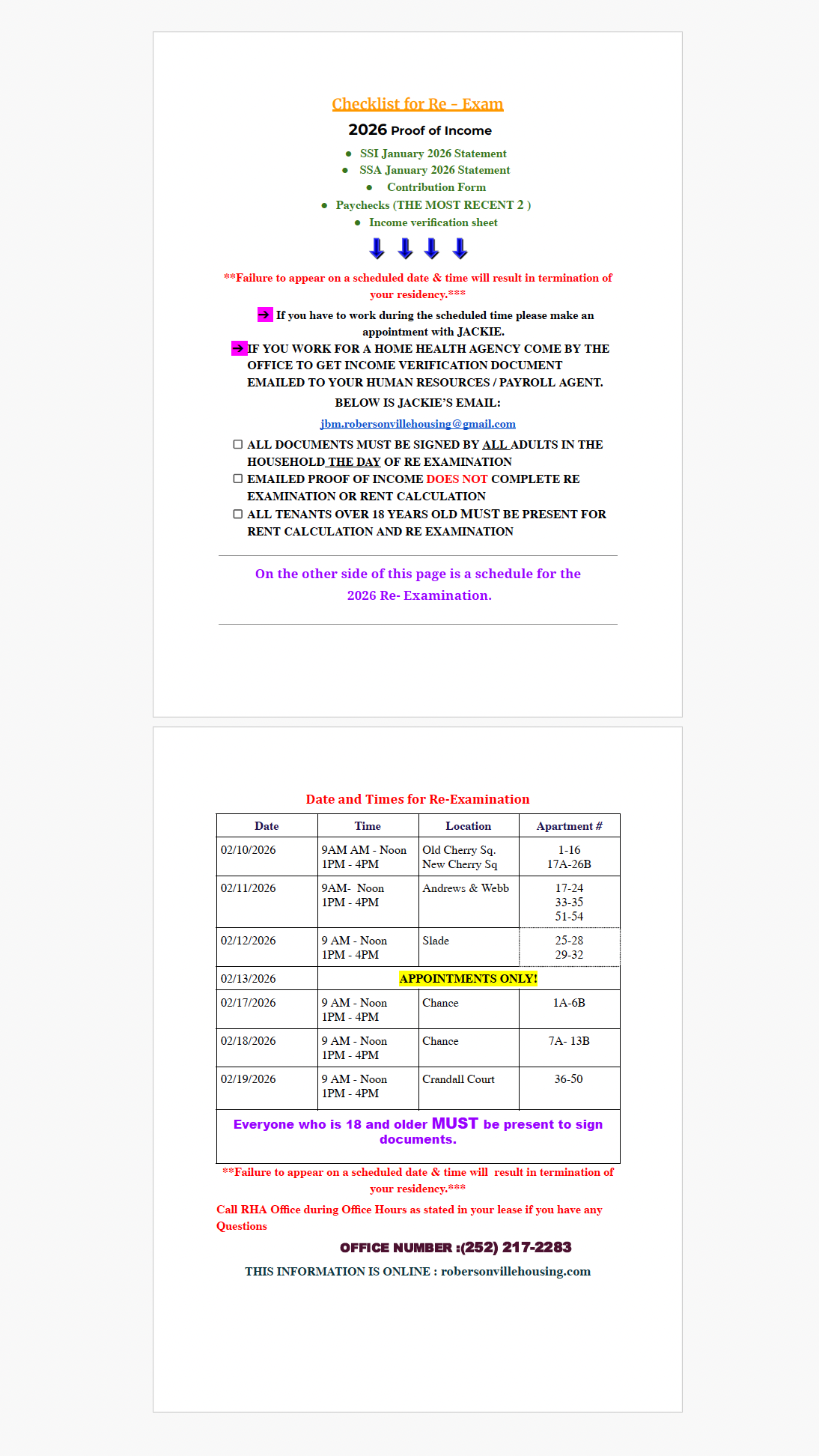 Notice to all Residents of the Robersonville Housing Authority